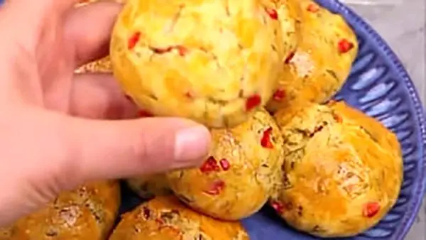 ماست و روغن و سفیده تخم مرغ، فلفل دلمه ، شوید تازه، هویج رنده شده همه رو باهم مخلوط کنید، بعد آرد و بیکینگ پودر و نمک رو کم کم اضافه کنید تا خمیر جمع بشه، بعد به توپک های مساوی تقسیم کنید و داخل سینی فر که کاغذ نسوز گذاشتین بچینید، روشو با زرده تخم مرغ رومال کنید و برای ۳۰ دقیقه داخل فر ۱۷۰ درجه بذارید؛ بعد هم سرو کنید و در کنار خانواده ازش لذت ببرید.
