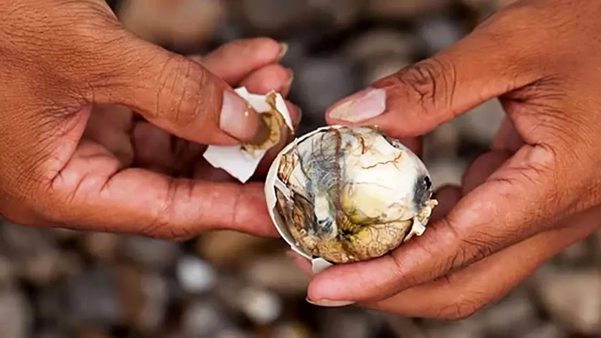 تخم اردک نطفهدار که به صورت آبپز سرو میشود. این غذا یکی از محبوبترین خوراکیهای خیابانی در فیلیپین است.