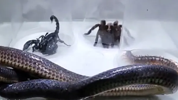 جدال مار سمی و عقرب و رتیل صدپا + فیلم