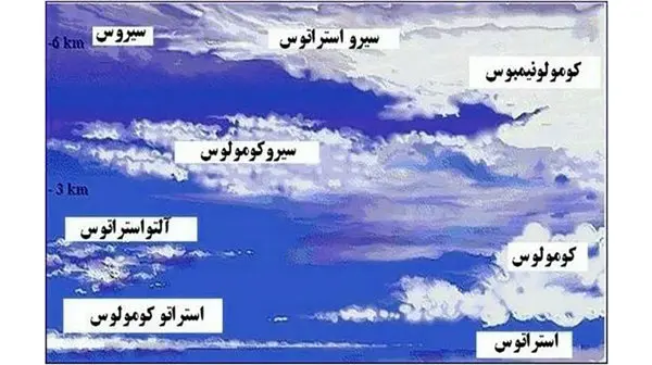ابــرها: ابرها مطمئنترین علایم هواشناسی هستند. ابرها را میتوان به ١٠ دسته کلی تقسیم کرد که ارتفاع متوسط هرکدام از سطح زمین مشخص شده است. در مناطق قطبی ارتفاع ابرها بهطورکلی پایینتر است و هرچه ارتفاع ابرها از سطح زمین بیشتر باشد، وضع هوا بهتر خواهد بود. انواع مختلف ابرها و ویژگیهای هرکدام در ادامه آمده است: