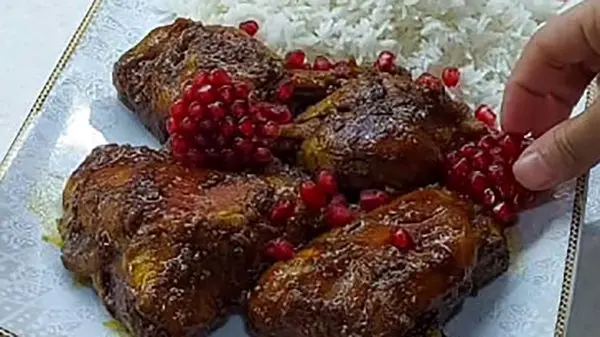 طرز تهیه مرغ ناردونی عالی برای شب یلدا + فیلم