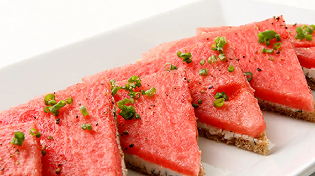 به گزارش رکنا، با کمی ذوق و خلاقیت می توانید این ترکیب ساده را به ساندویچ هندوانه ای مدرن و مجلسی تبدیل کنید و در میهمانی ها سرو کنید. این دسر ساده و خوشمزه انتخابی عالی برای پذیرایی شب یلدا است.