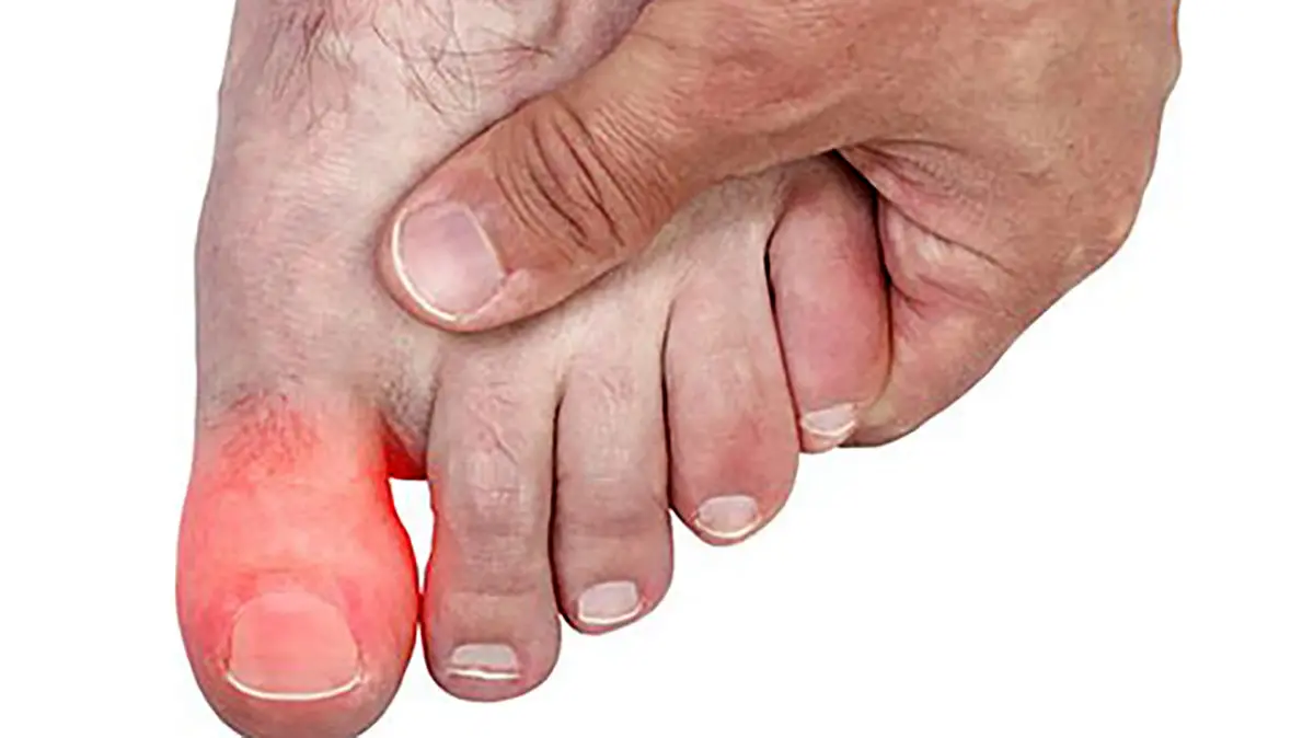 نقرس التهاب مفصل که معمولاً در انگشت شست پا رخ می‌دهد و با درد تیر کشنده همراه است.