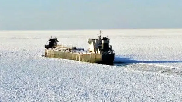 کشتی باری در دریاچه یخ‌ زده ایری گرفتار شد؛ ماجرای یک حادثه دریایی
