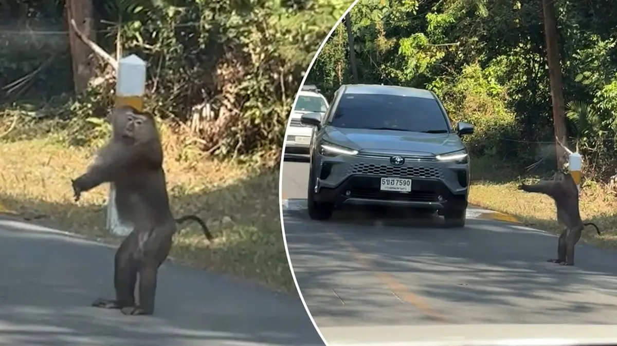 رکنا: در یک صحنه خندهدار در تایلند، یک میمون وحشی به طور موقت به عنوان پلیس راهنمایی و رانندگی ایفای نقش کرد.