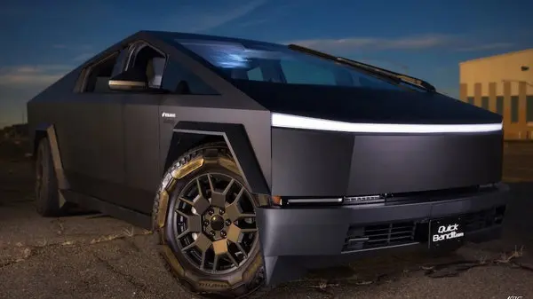 رکنا: یک سایبرتراک تسلا در برف گیر کرده که در این فیلم مشاهده می کنید.