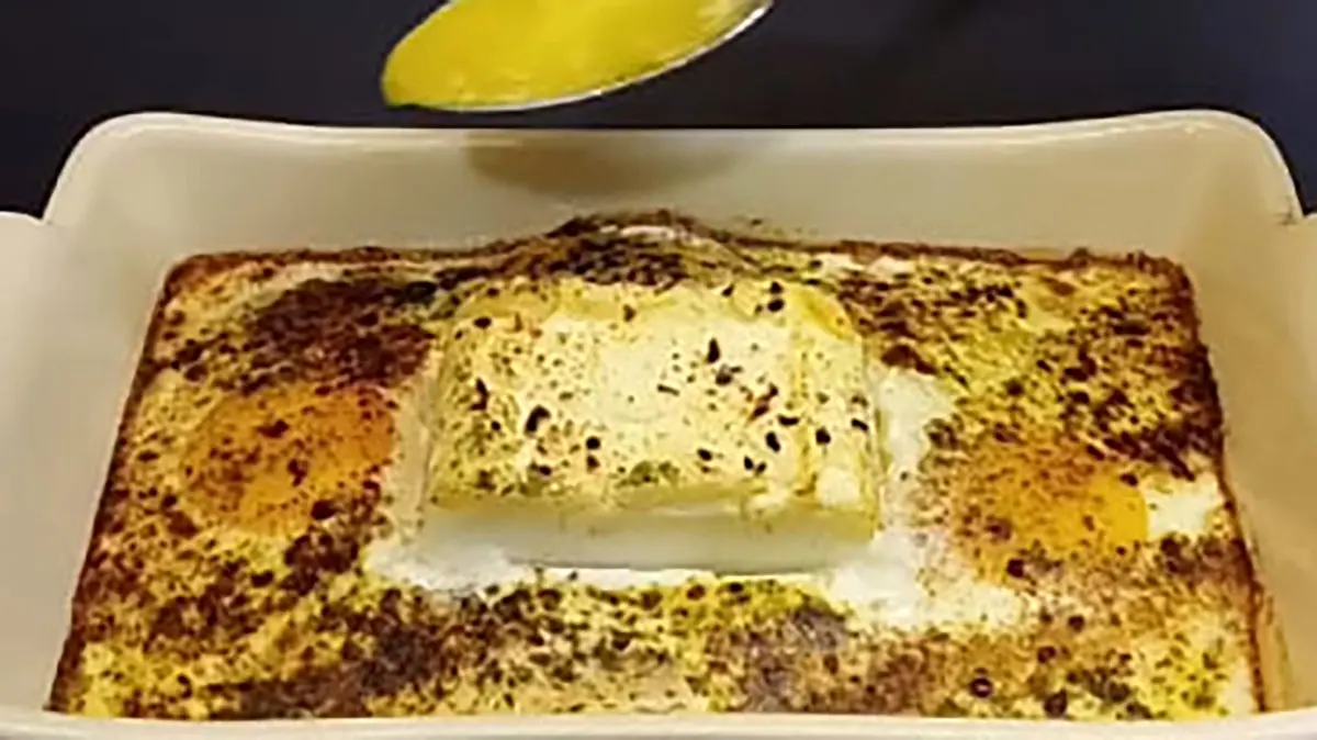 ۵.از فر که خارج کردید کره آب شده رو بریزید روی تخم مرغ و تمام