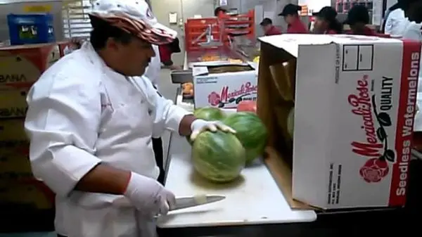 شوکه شوید! آبمیوه فروش آمریکایی در برش هندوانه رکورد زد+ فیلم