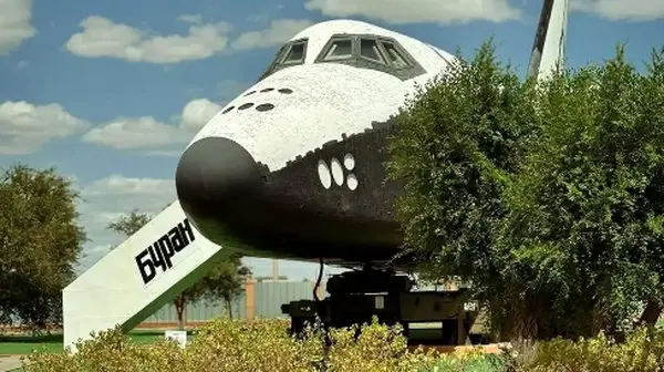 نمونه موزهای از ماکت شاتل بوران، شامل محفظه بار و کابین خلبانان
