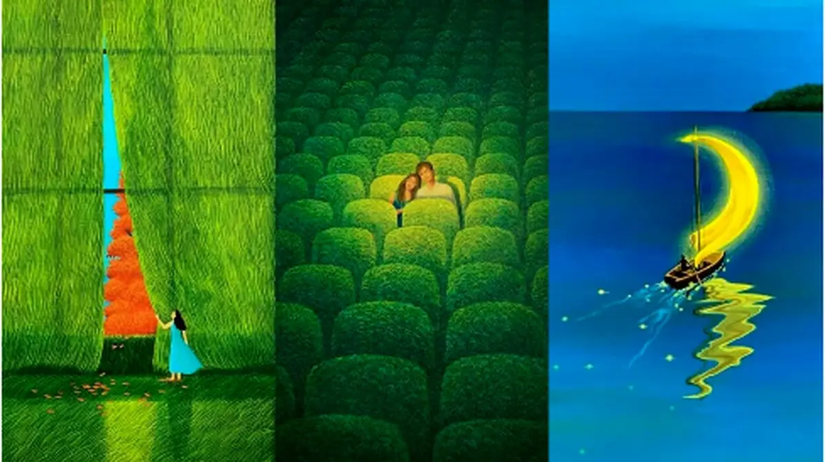 کلبه هایی آرامش بخشدرختی تنومند در جنگلدختری در حال نقاشی در جنگلفردی قایق ران در فضایی انتزاعیاثر هنری آرامش‌بخش مول‌گیل کیم (Mulgil Kim)مرد و زنی دست در دست هم در دشتتضاد فصلی دشت و برفقایقی در آب اثر هنری Mulgil Kimاثر هنری آرامش‌بخشدختر و پسری در فضای خیالیاثری خیالی و آرامش بخش از Mulgil Kimلباسی آویزان بر طناب اثر Mulgil Kim