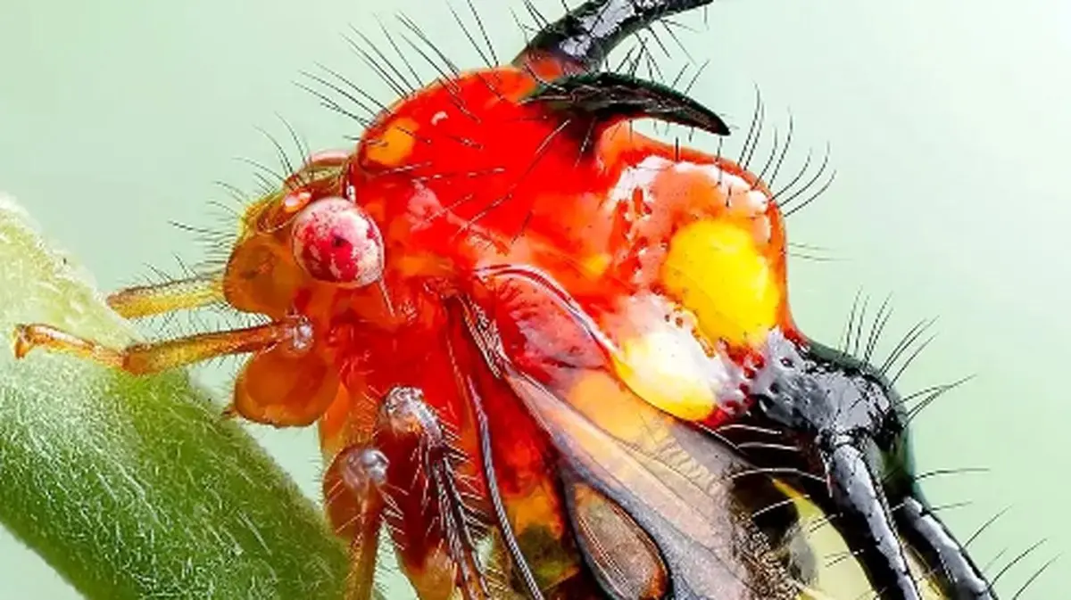 عکاس حرفهای برای ثبت این تصویر ارزشمند، مجبور شد با استفاده از تکنیک پیشرفته فوکوس استکینگ (Focus Stacking) که ترکیبی از چند عکس با نقاط فوکوس متفاوت است، شرایط را مدیریت کند. حرکت ممتد حشره و شرایط دشوار محیطی، این فرآیند را پیچیدهتر کردند. او نمیتوانست ساقه را لمس کند تا مبادا حشره فرار کند؛ بنابراین، تنها با تثبیت دوربین و کنترل بدن خود، اقدام به ثبت تصویر کرد.
