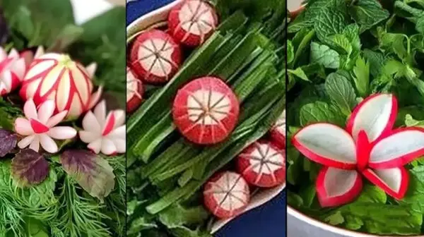 اصول تزئین سبزی مجلسی / هنر چیدمان تربچه و پیازچه