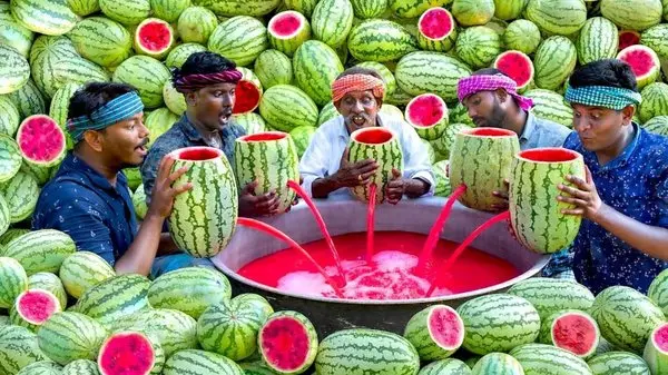 رکنا: برداشت هندوانه به سبک روستایی در هند؛ پدر هندی همراه با فرزندانش در دل طبیعت هندوانهها را برداشت میکنند و با خلاقیتی جذاب، آب هندوانه تازه تهیه میکنند.
