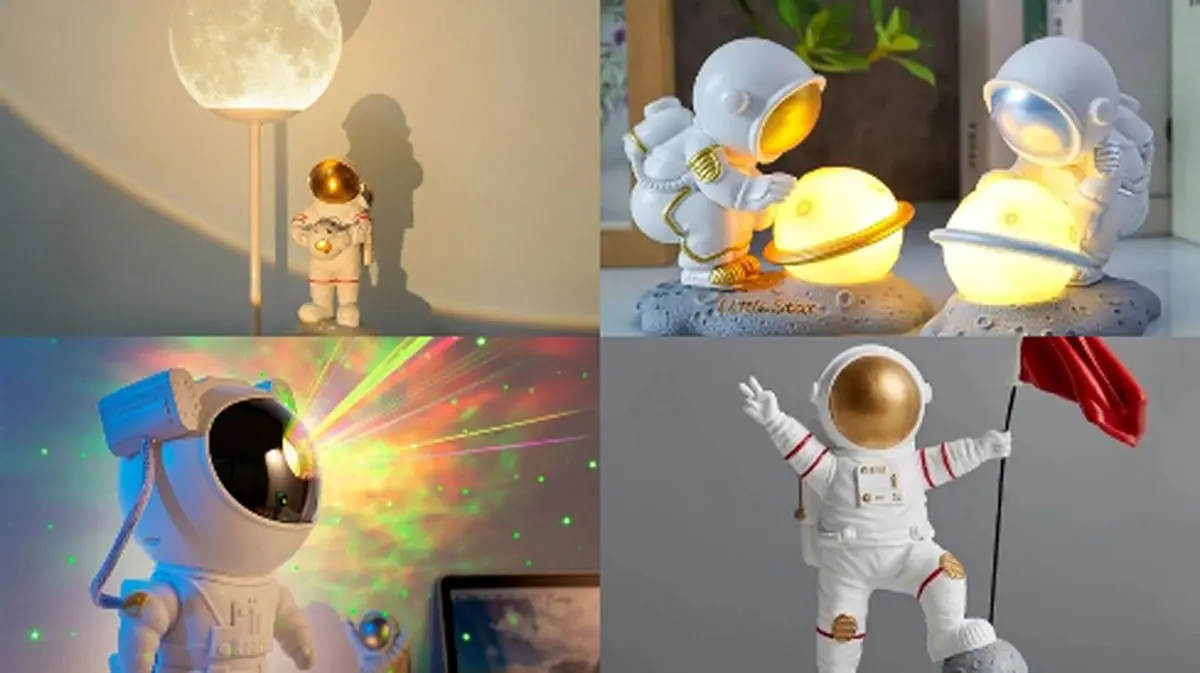 این مدل ها معمولاً از جنس پلاستیک یا فلز ساخته می شوند و طرح فضانورد یا کاوشگر فضایی را به نمایش می گذارند. آنها معمولاً به صورت چراغ رومیزی طراحی شده اند و نور نرم و گرمی را به فضا می دهند.