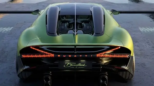 یکی از ویژگیهای جالب این خودرو، وجود نوارهای LED افقی در قسمت جلویی آن است که جلوهای مدرن و در عین حال دینامیک به برویا بخشیده است. علاوه بر این، طراحی خاص چراغهای عقب با الگویی فلشمانند و نشان نورانی BUGATTI، برگرفته از مدل روباز میسترال، جلوهای متمایز به خودرو داده است. این خودرو همچنین با یک اسپویلر ثابت و کوچک، در قسمت عقب، نمایی منحصر به فرد ایجاد کرده است.