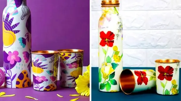 15 ایده هدیه جذاب با بطری و لیوان مسی لاکچری