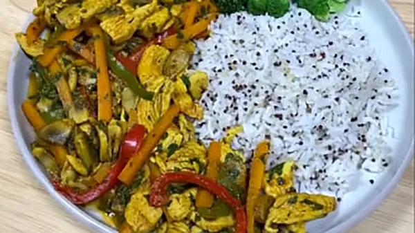 به گزارش رکنا، یه ترکیب جذاب و سالم؛ برنج پخته شده با کینوا که هم سبکتره، هم سرشار از فیبر و پروتئینه. کنارش مرغ تفتخورده با فلفل دلمهای، قارچ و رب گوجهفرنگی که یه طعم خونگی و دلچسب به غذا داده.
