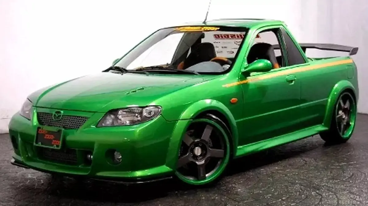 مسئولیت تبدیل این خودرو به مزدای کنونی بر عهده شرکت Pro Design HotRods بوده است. این شرکت مزدا استیشن واگن پنجدر را به یک وانت دو در مجهز به قسمت بار تغییر داد. اما تغییرات به همین جا ختم نمیشوند؛ این خودرو دارای یک کیت بدنه عریض از DG Motorsports، یک بال عقب ثابت، رنگ سبز سفارشی با گرافیکهای نارنجی و همچنین مجموعهای از رینگهای آلیاژی ۱۹ اینچی است. این خودرو در ابتدا دارای نورپردازی نئون زیر بدنه بود که اکنون دیگر فعال نیست.