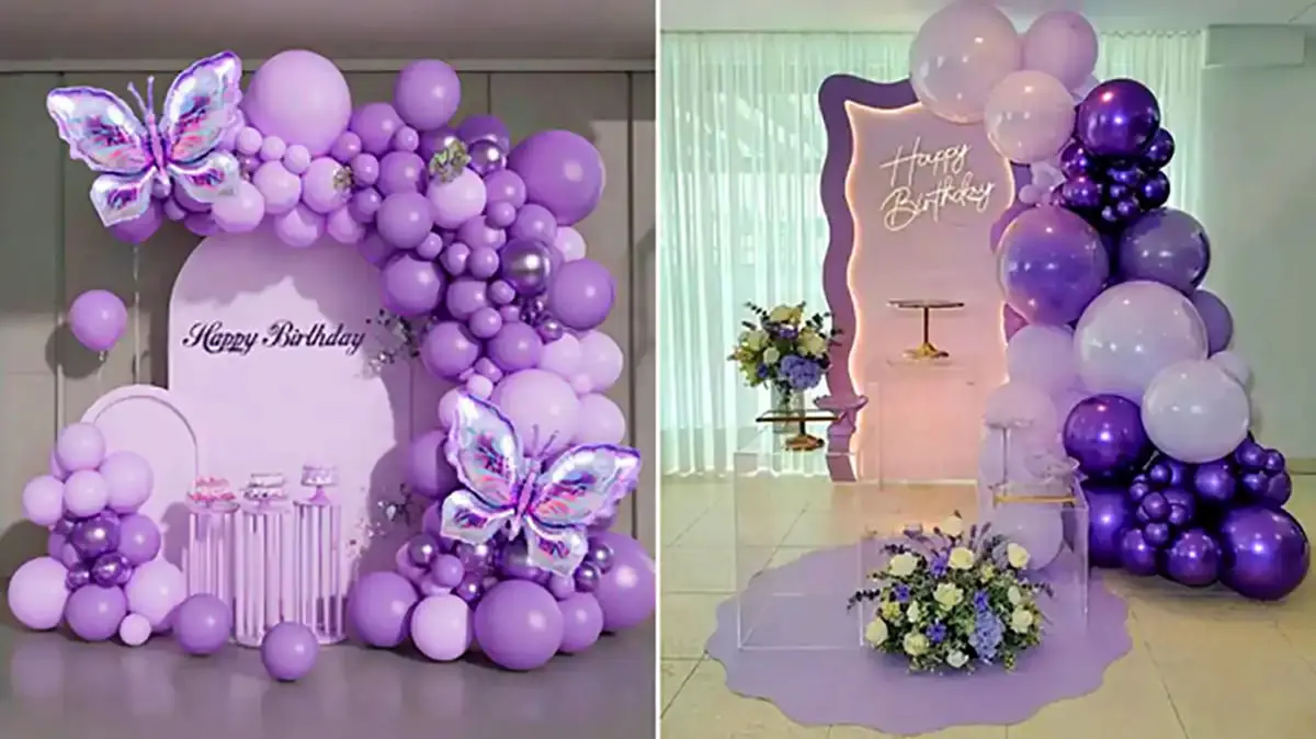 ببینید / انواع تزئین بادکنک تولد با تم بنفش و صورتی