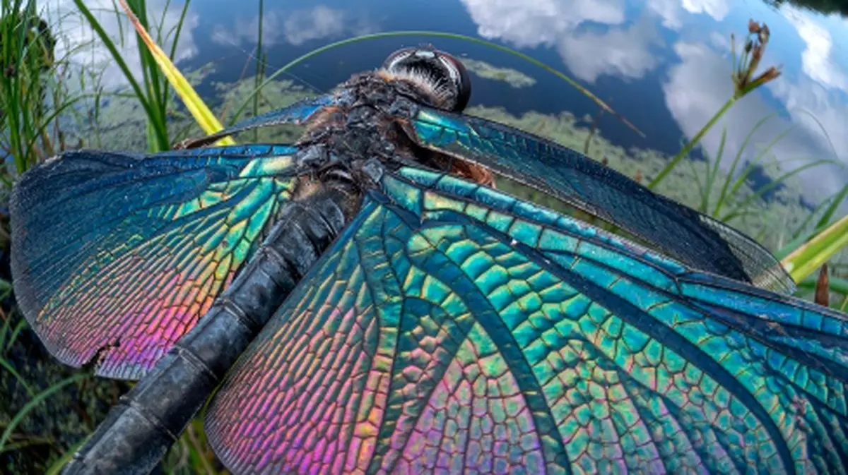 یک سنجاقک پوشیده از شبنم در لحظهای خاص از صبح، فرصت استراحت پیدا کرد. ایشیگورو برای ثبت این تصویر منحصربهفرد، چندین بار به همان مزرعه بازگشت تا همه شرایط به بهترین شکل فراهم شود.