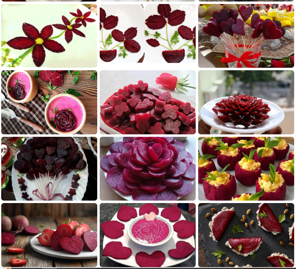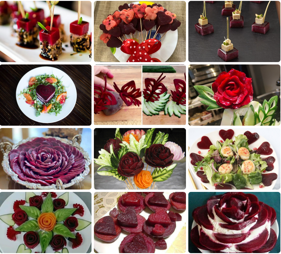 لبو را به شکل حلقههای باریک برش بزنید و با قالبهای فلزی کوچک (مانند قالب قلب، ستاره یا گل) شکل دهید. این قطعات زیبا را میتوانید در کنار سایر میوهها مثل انار و هندوانه روی سفره قرار دهید یا به سالاد اضافه کنید.