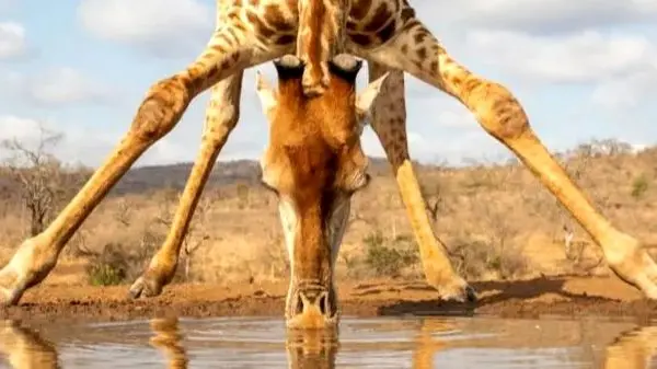 با این حال، پاهای بلند زرافهها چالشهای خاص خود را نیز به همراه دارد. برای مثال، هنگام نوشیدن آب، آنها مجبورند دستهای خود را از هم باز کنند که این وضعیت آنها را در برابر شکارچیان به شدت آسیبپذیر میکند. تحقیقات نشان داده است که زرافهها بیشتر از سایر پستانداران به دلیل خطر شکارچیان از نوشیدن آب صرفنظر میکنند.