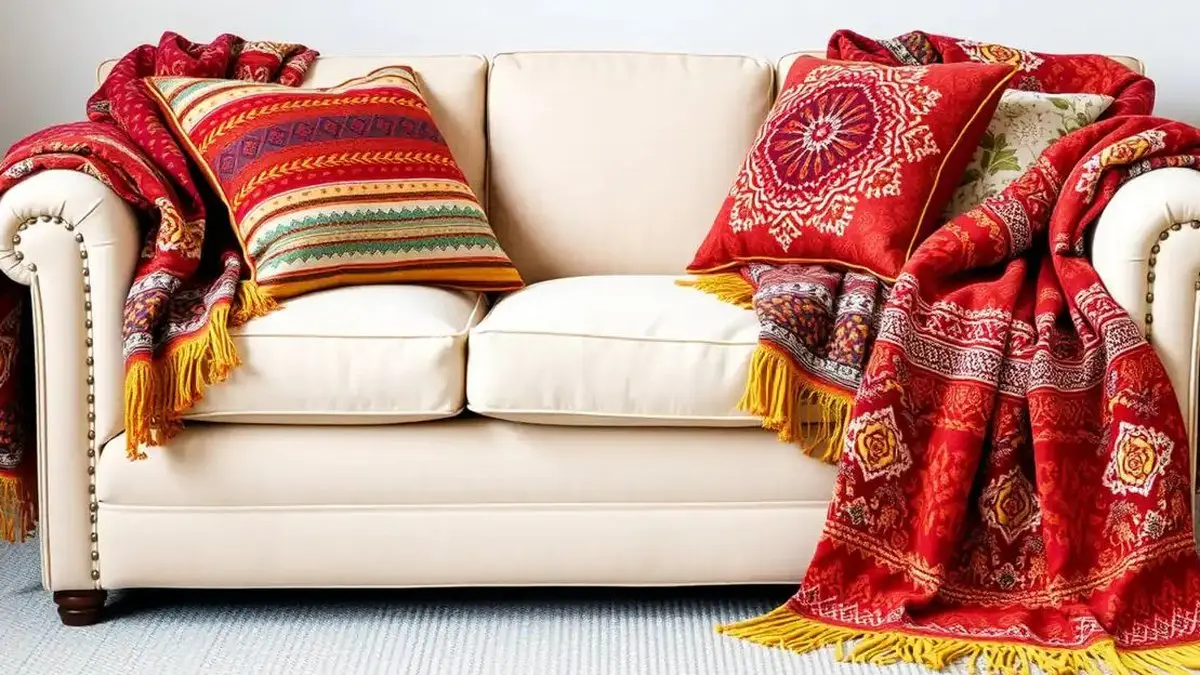 هماهنگی رنگ شال با کوسنها و دیگر پارچهها