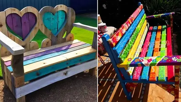 نیمکت‌های چوبی نقاشی شده، ترکیبی از هنر و عملکرد
