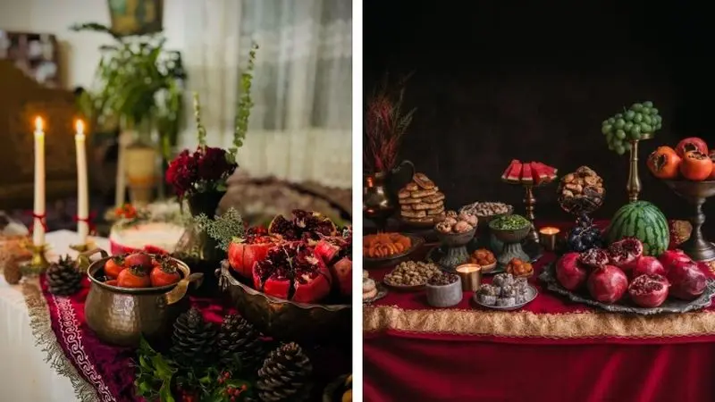این پیشنهادها، ترکیبی از نورپردازی مدرن و استفاده از المانهای طبیعی در چیدمانهای مینیمال یا کرسیهای سنتی است، در کنار پذیرایی با کیکهای هندوانهای، شکلاتهای اناری و سینیهای مختلف از تنقلات سنتی و مدرن که فضایی خاص و دلنشین خلق میکند.