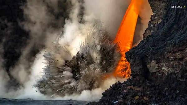 این روند بی وقفه عکس روز نشنال جئوگرافیک انتخاب شده است. هنگام ورود گدازه ها به درون آب سرد برخی از سنگ ها شکافته و فرو می ریزد.برای ورود به کانال تلگرام ما کلیک کنید.