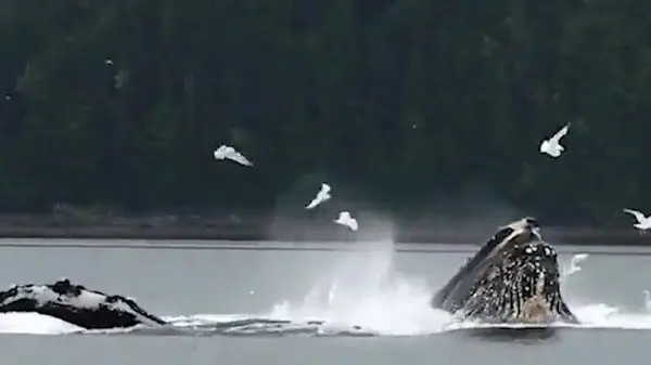 نهنگ ها در آبهای آلاسکا به صورت گروهی شکار می کنند و با این روش بسیار موفق تر هستند.