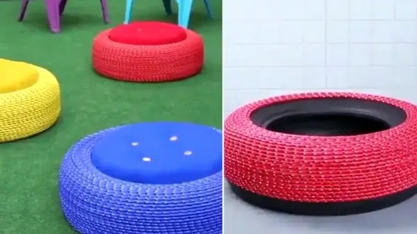 ساخت مبل راحتی با استفاده از لاستیک خودرو و کش + فیلم