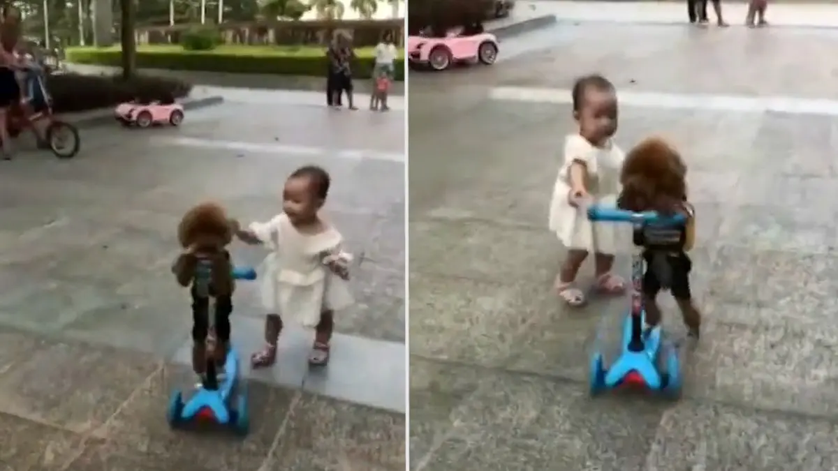 به گزارش گروه ترجمه رکنا؛در این ویدئو سگی را مشاهده می کنید که به زور اسکوتر یک دختر بچه را می گیرد و با اسکوتر از آن مکان دور می شود به نحوی که کاملا بر هدایت اسکوتر آگاهی دارد. دختر بچه نیز به دنبال اسکوتر می دود اما موفق نمی شود به او برسد .برای ورود به کانال تلگرام ما کلیک کنید.