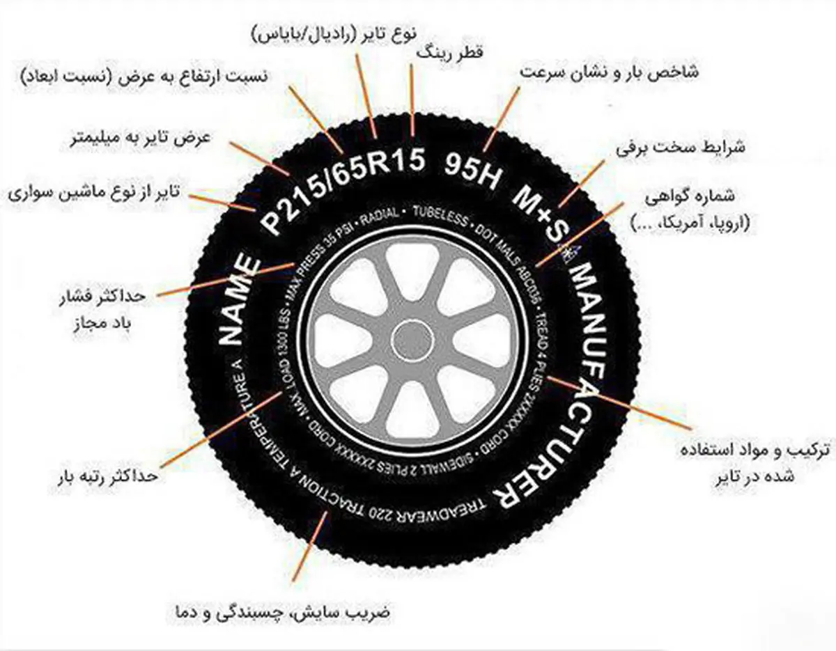 رکنا: نوشتههای روی لاستیک خودروها را دیدهاید و با آنها آشنایی ندارید. با این تصویر بدانید که هر نوشته روی لاستیک چه معنایی دارد.