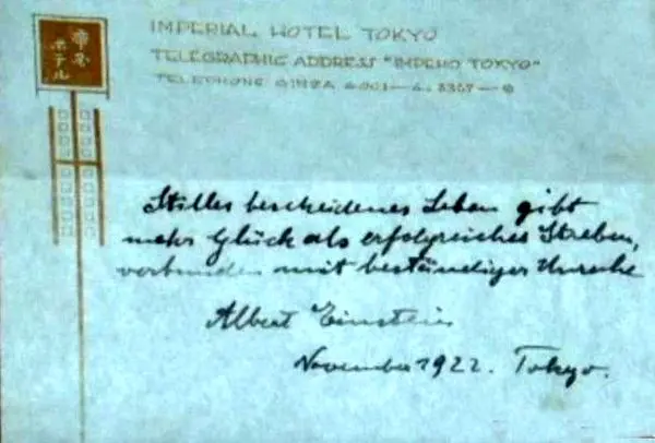 انیشتین در یادداشت خود نوشته است: «یک زندگی آرام و ساده شادمانهتر از موفقیتی است که با تلاطمهای زیاد به دست می آید.»برای ورود به کانال تلگرام ما کلیک کنید.