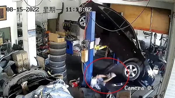 فیلم سقوط خودرو روی مرد تعمیرکار