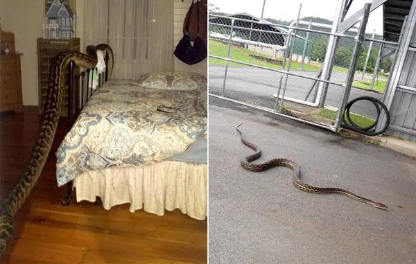 در بازدید از سقف این خانه مشخص شد مار پیتون این سال ها در آنجا برای خودش آشیانه ای دست و پا کرده بود.