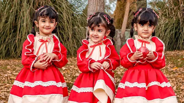 به گزارش رکنا، چندی پیش شب یلدا بود و خانواده های ایرانی در هر جا که باشند با چیدن سفره شب یلدا و همچنین پوشیدن لباس های مرتبط با یلدا از نظر طرح یا رنگ که اغلب از رنگ های سبز و قرمز استفاده می کنند تا حس و حال نماد هندوانه و انار را که از میوه های شب یلدا است زنده نگه دارند. در این راستا خانواده خواهران سه قلو که چند ماه پیش مصاحبه ای را با آنها در رکنا منتشر کردیم هم حال و هوای شب یلدا را زنده نگه داشتند که در ادامه عکس های آنها را خواهید دید.