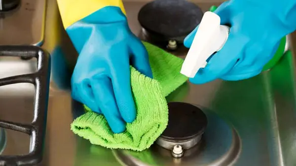 تمیز کردن گاز استیل به شکل متداول و عادی میتواند با استفاده از روشهای مختلف صورت گیرد. یکی از روشهای معمول برای از بین بردن لکهها و کثیفیهای سطح گاز، استفاده از ترکیب آب و آمونیاک است. در این روش، آمونیاک را با آب مخلوط کرده و محلول حاصل را در بطری بریزید و روی لکهها اسپری کنید. سپس با استفاده از یک دستمال نرم، سطح گاز را پاک کرده و از تمیزی آن لذت ببرید.