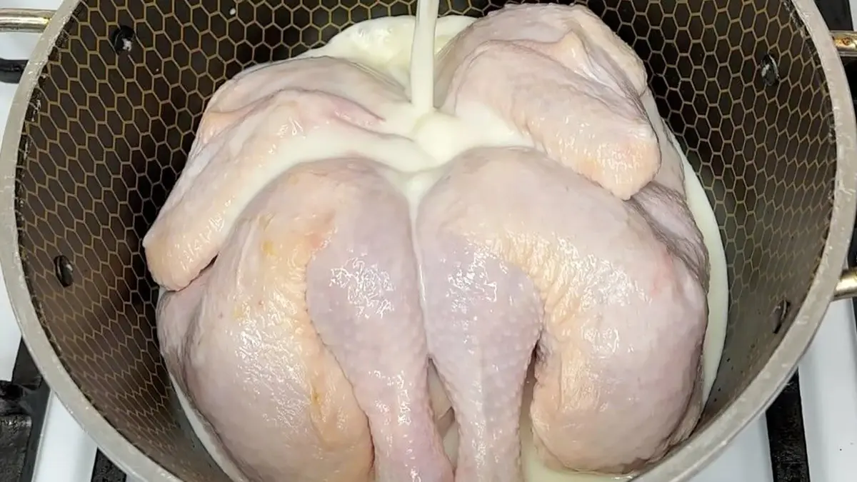 جوجه ها را همراه شیر و نمک و فلفل سیاه به مدت یکربع بگذارید بجوشد؛ با این کار هم بوی مرغ گرفته می شود و هم بافتش تردتر می شود.