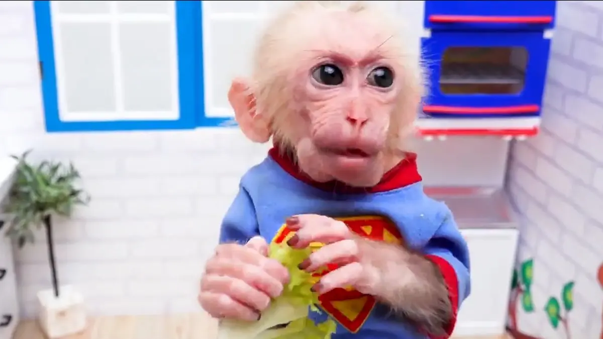 رکنا: این بچه میمون به خوردن سبزیجات علاقه مند است.