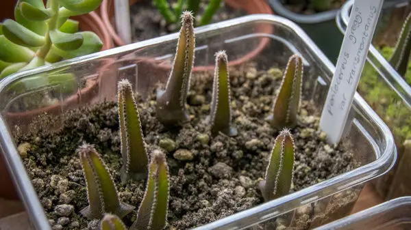به این صورت است که کاکتوس ها را در سبدهای پلاستیکی کم عمق با یک خاک بسیار سبک (ترجیحا پیت ماس) کشت می کنند. آبیاری بسترهای کشت در پای گیاه انجام می گیرد، یا اینکه سبدها را در ظرف های آبی قرار داده که به تدریج آب را جذب می کند و گیاه و بذرها مرطوب شده و بعد جوانه می زنند. مانند هر گیاه دیگر، بذر کاری باعث طولانی شدن زمان رشد و نمو و بلوغ گیاه می شود.