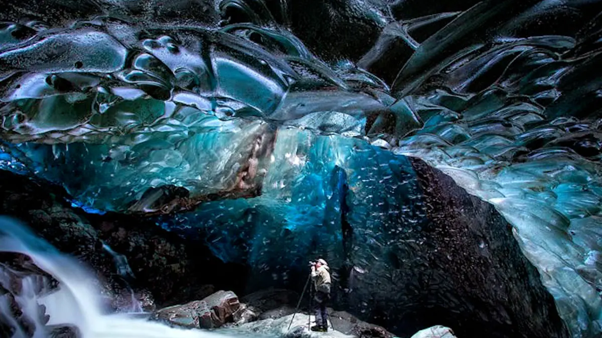 ببینید / زیبایی خیره کننده غارهای یخی واتناکویول در ایسلند + فیلم