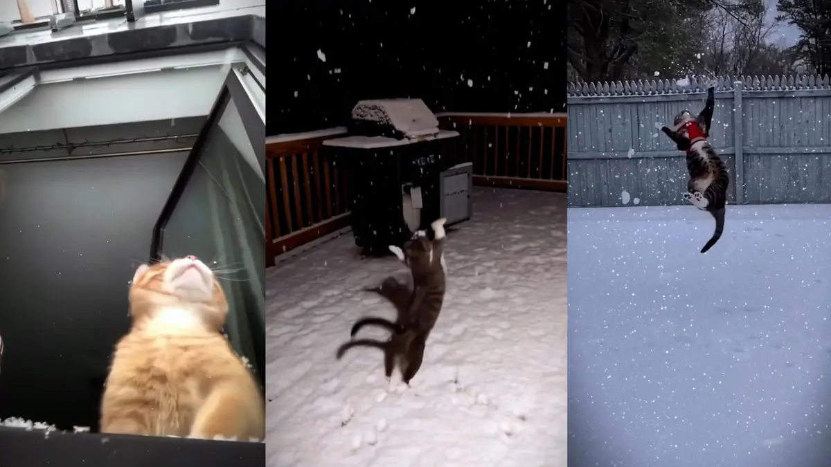 بازی جالب گربه ها با برف + فیلم