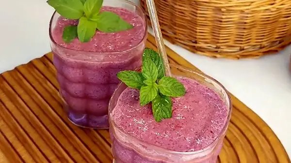 درنهایت شکر یا عسل را همراه وانیل به مخلوط بیفزایید و برای یک دقیقه روی دور موتور متوسط مواد را با هم مخلوط کنید. یک ترکیب لطیف و خوشرنگ حاصل میشود. آن را در لیوانهای کمرباریک و بلند بریزید و با یک شاتوت تزیین کنید.