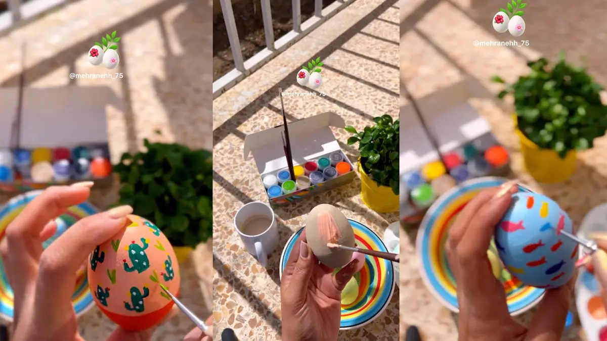 رکنا: تخم مرغ سفالی رو با قلمو و رنگ گواش اینطوری رنگ میکنیم و میذاریم تو سفره هفت سین.