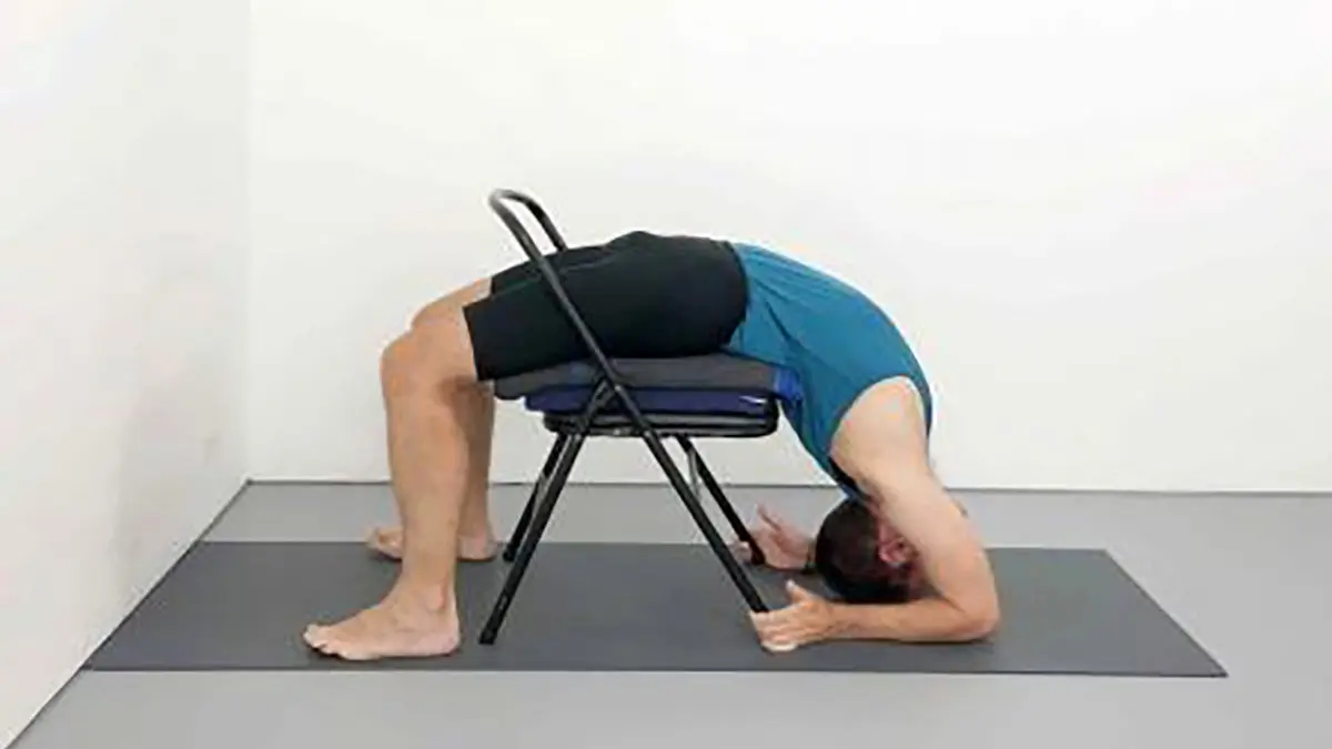 برای انجام یک صندلی که به جلو خم شده است روی لبه صندلی بنشینید و پاهای خود را به عرض ران از هم جدا کنید. عمیق نفس بکشید و در حالی که نفس می کشید از کمر به جلو خم شوید با هدف رسیدن به دستان خود به زمین. ستون فقرات خود را دراز نگه دارید و گردن خود را شل کنید. به آرامی به حالت نشسته برگردید. برای 10 تکرار تکرار کنید.