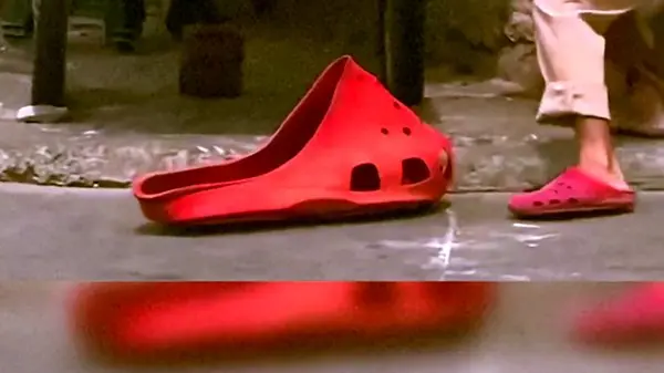 به گزارش رکنا، یک فرد برای شوخی کردن اقدام به ترساندن افراد می کرد. او وقتی فردی دمپایی در پایش بود و مشغول کار در زمینی که دچار آبگرفتگی شده بود از پشت با پر پایش را قلقلک می دهد و به محض اینکه آن مرد دمپایی را از پایش درمی آورد تا پایش را بخاراند یک دمپایی پلاستیکی بسیار بزرگ را درست جلو پایش می گذارد تا او بپوشد. ولی این مرد وقتی پایش را در دمپایی غول پیکر می کند وحشت زده می شود که واکنش او را در فیلم می بینید.
