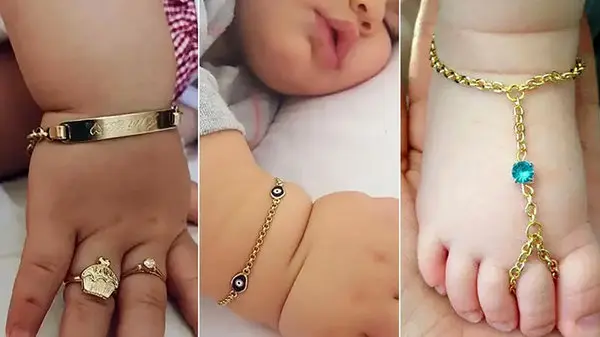 رکنا: یکی از محبوبترین انواع زیورآلات طلا برای نوزادان، دستبند و پابند است.