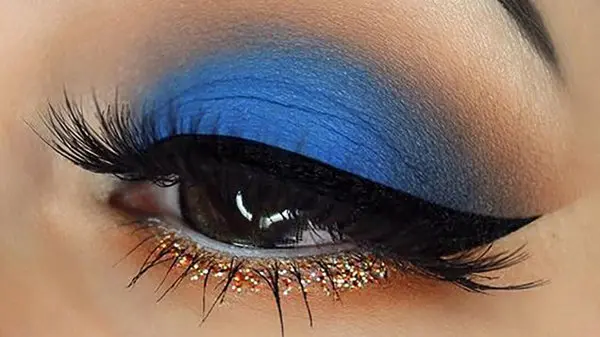 آرایش با اکلیل: برای درخشش بیشتر، کمی اکلیل آبی یا نقرهای به گوشههای داخلی چشم یا روی خط مژهها بزنید.
